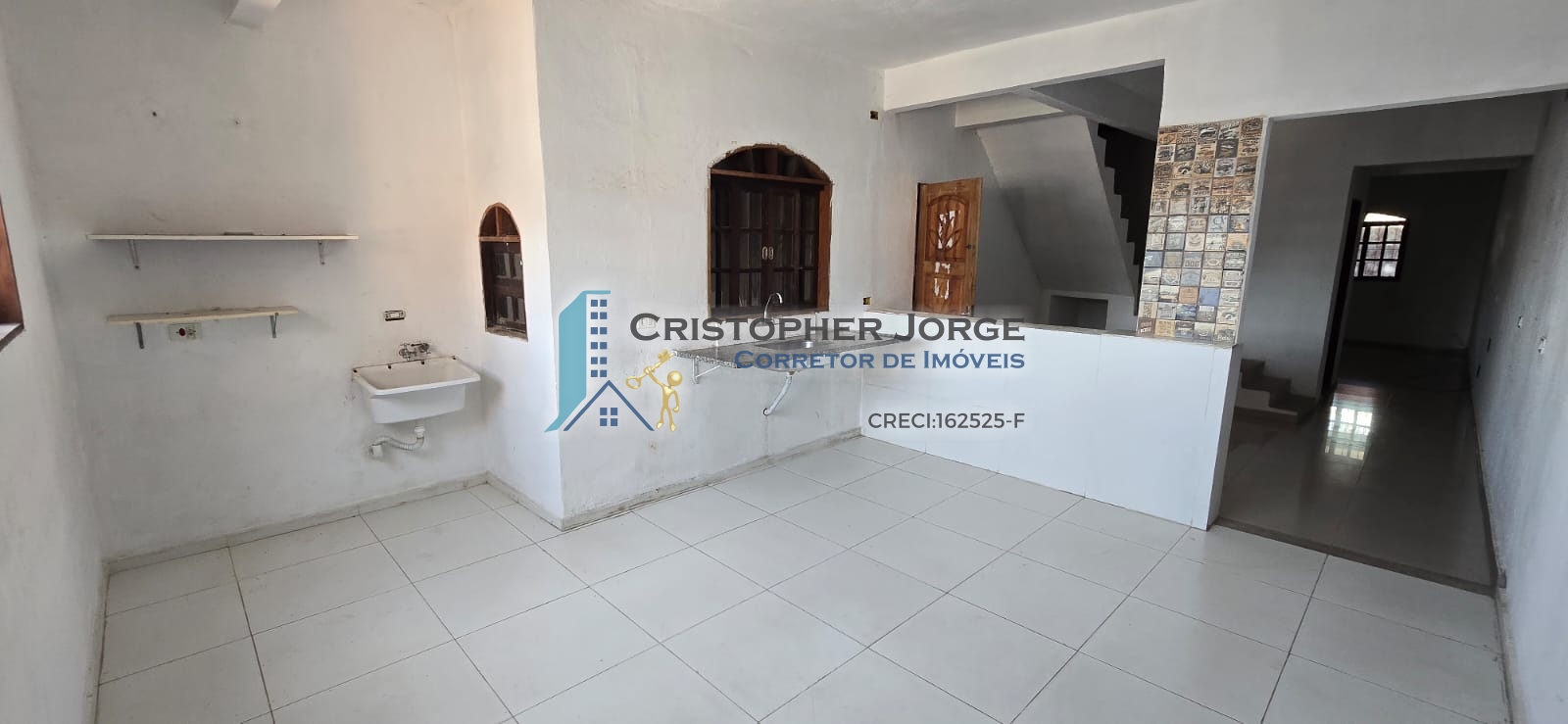 - No térreo uma vaga de garagem coberta para carro e moto, sala de estar, banheiro social, sala de jantar, cozinha americana e lavanderia;