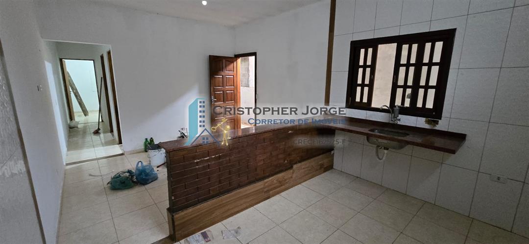 - Casa no térreo com portão social fechado e corredor com lavanderia nos fundos, sala ampla com cozinha americana, banheiro social e dois dormitórios;