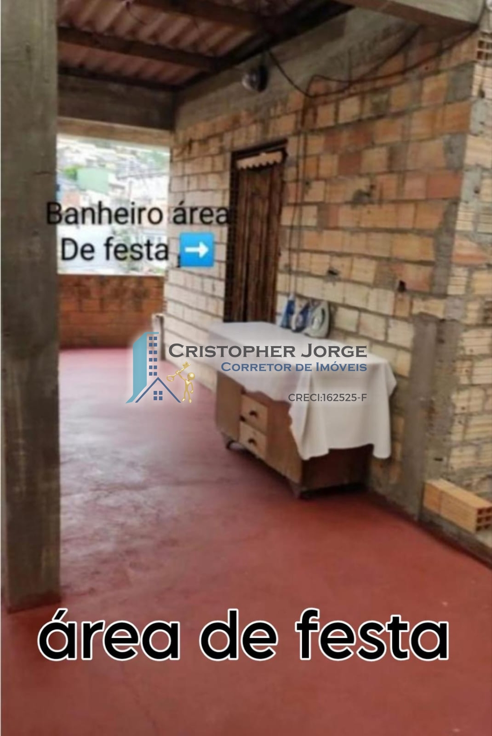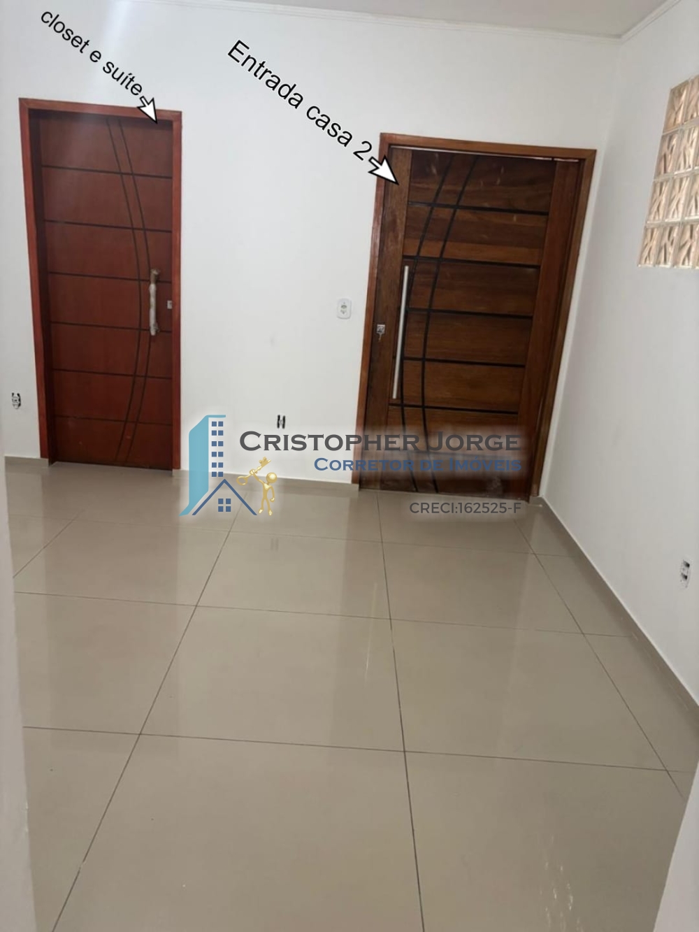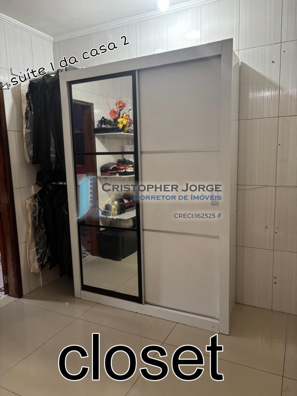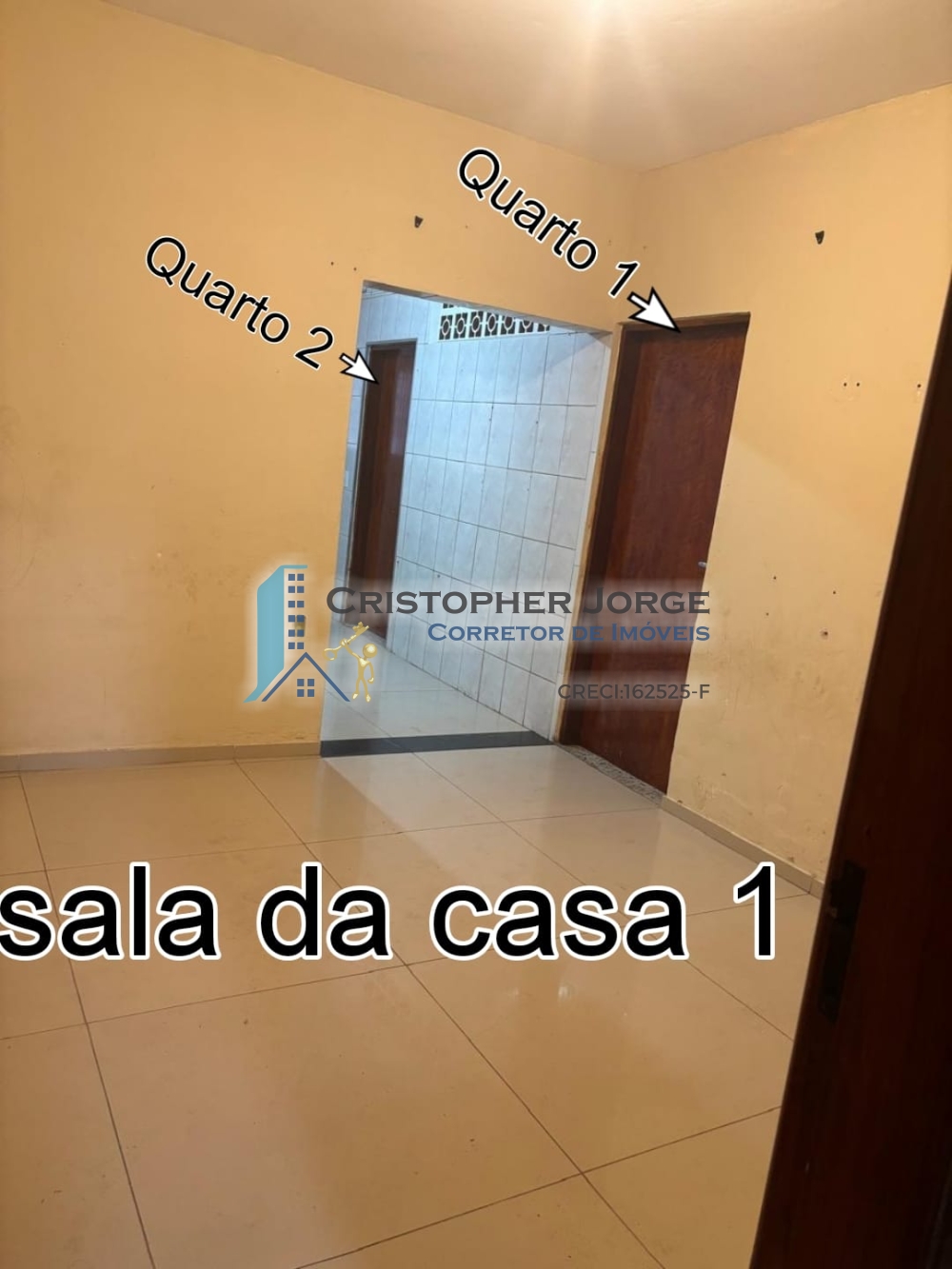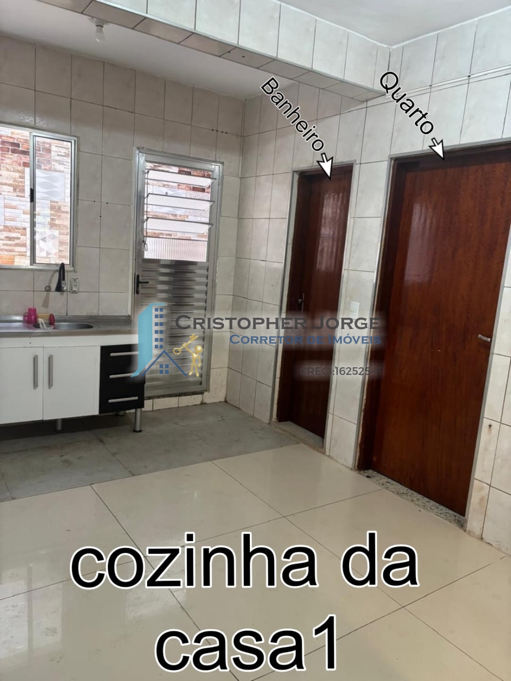- Casa no primeiro andar com duas suítes, cozinha, sala de estar, lavanderia e banheiro social;