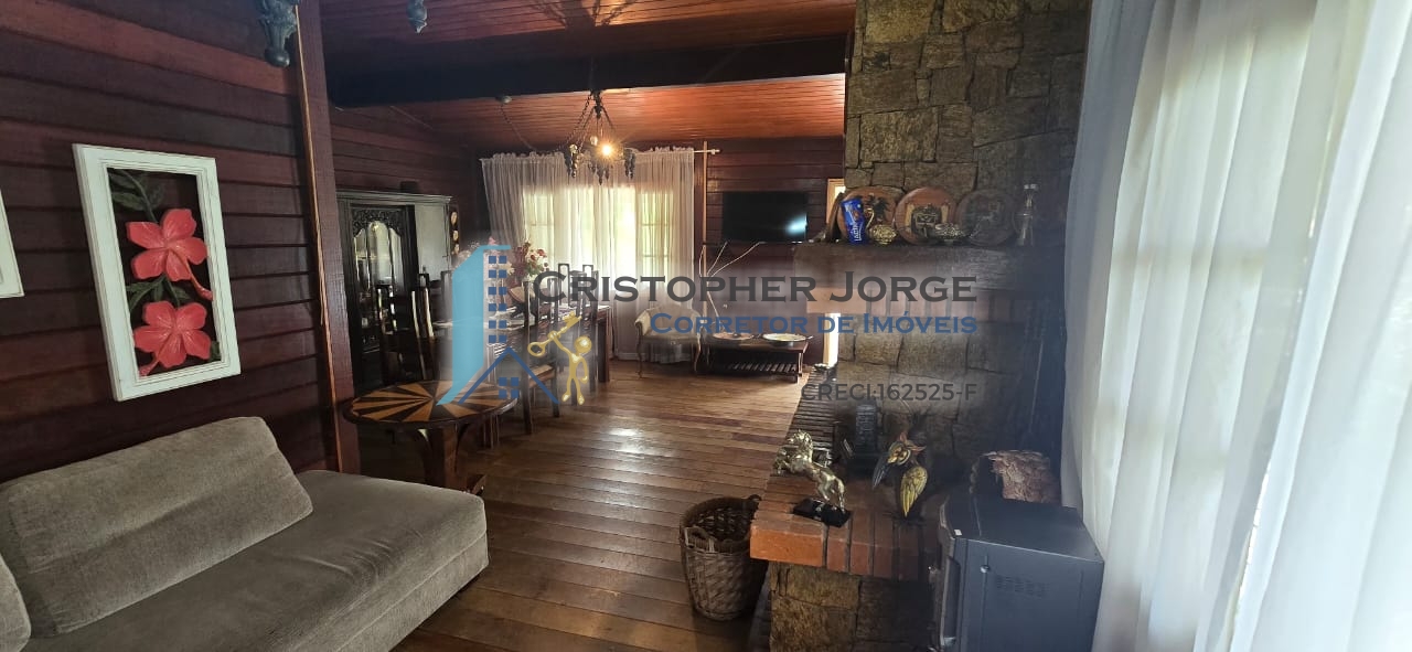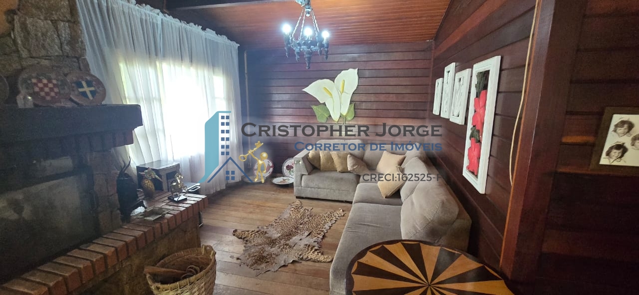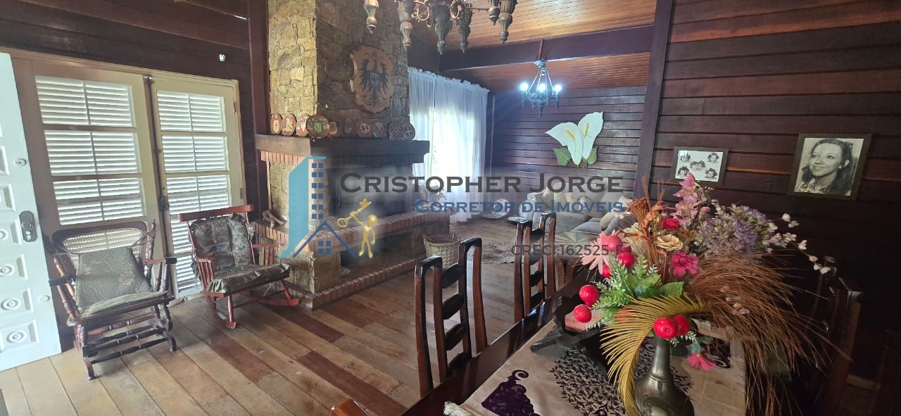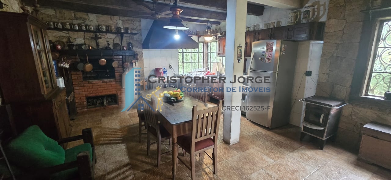 - Casa principal com sala em dois ambientes, sala de estar com lareira, sala de jantar, sala de TV, cozinha ampla com churrasqueira, banheiro social, três dormitórios sendo uma suíte.